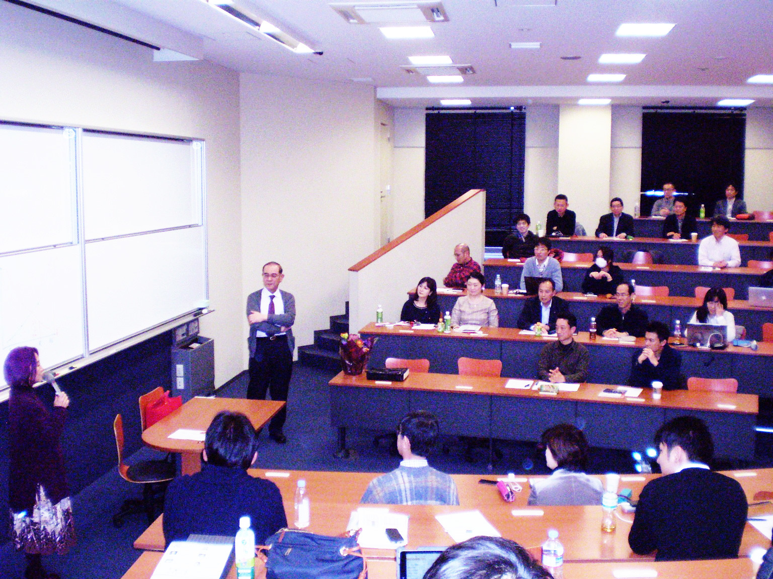 2009年度から2012年度まで「ビジネス経済学」の授業は大久保先生と浜先生とがジョイントした講義が行われており、当時、「最も贅沢な授業」と呼ばれていました。その授業が1日限りの復活を果たしました。「復活!ビジネス経済学」は、1期生の方から在校生まで、また遠くは東京や熊本から、72名もの多くの方にご参加頂き、大変盛況でした。